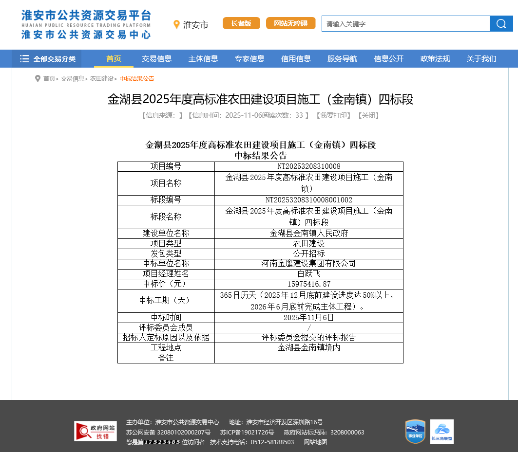 11月26日,金湖县 2025 年度高标准农田建设项目施工(金南镇)四标段招标工作落下帷幕,经过层层严苛评审,金鹰集团凭借扎实的技术实力、丰富的施工经验及对生态农业建设的深刻理解,成功斩获该标段中标资格!这既是对金鹰集团专业能力的高度认可,更是助力金湖县乡村振兴事业的重要契机。