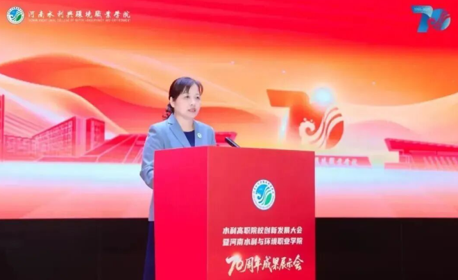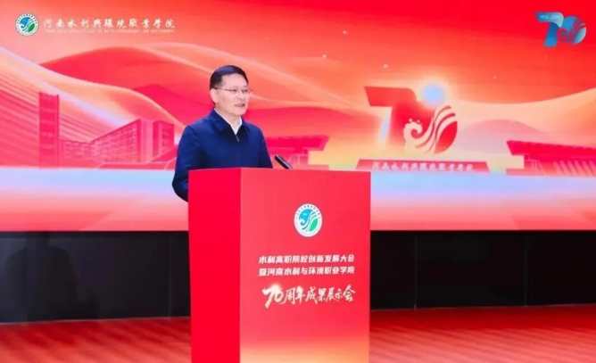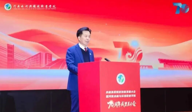 河南省教育厅党组成员、省委教育工委专职副书记刘林亚在致辞中表示,“在职业教育发展进程中,河南水环学院始终立足中原大地,聚焦产业需求,为区域经济发展培养了大量下得去、留得住、用得上的高素质技能人才。希望学校以建校70周年为新起点,承七秩基业,开未来新篇,展现更大作为。”