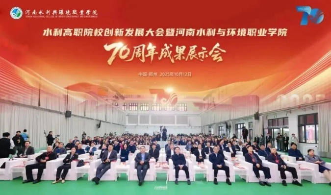 七秩芳华,水利千秋。10月12日,学校校园内高朋满座、胜友如云,水利高职院校创新发展大会暨办学70周年成果展示会在航空港校区隆重举行。河南省教育厅党组成员、省委教育工委专职副书记刘林亚,河南省水利厅党组成员、副厅长、一级巡视员刘玉柏,河南省水利厅副厅长祝云宪等各级领导、兄弟院校代表、行业企业嘉宾、各界校友及在校师生齐聚一堂,共庆学校七十华诞,共谋水利职业教育创新发展大计。