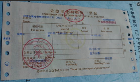 2023年10月11日,河南金鹰建设集团有限公司向新疆和田捐赠助学款